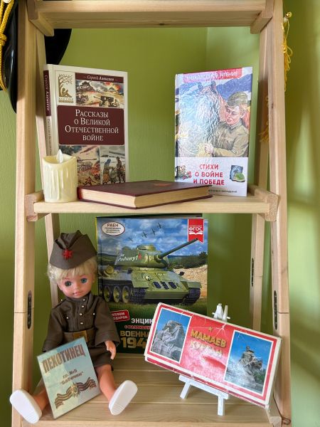 - оформлена выставка в буккроссинге «В КНИЖНОЙ ПАМЯТИ МГНОВЕНИЯ ВОЙНЫ…», в котором для детей и их родителей представлены книги о великом подвиге нашего народа,