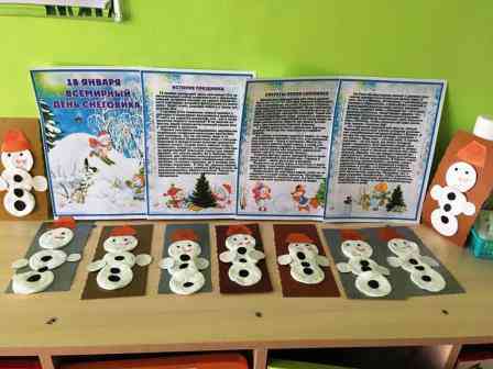 В честь празднования День рождения Снеговичка, педагоги всех групп подготовили и организовали просмотр познавательных презентаций «Откуда появился Снеговик?», «Эти разные Снеговики», мультфильмов «Снеговик-почтовик», также провели творческие мастер-классы по изготовлению снеговиков из бросового и природного материала. Ребята рисовали и лепили снеговиков, читали о них сказки и стихи, даже на музыкальное занятие к воспитанникам группы №4 «Светлячки» пришел самый настоящий веселый и задорный Снеговик, дети играли с ним в подвижные игры, танцевали и веселились. А воспитанники группы №8 «Муравьишки» собрали самого большого снеговика!!!