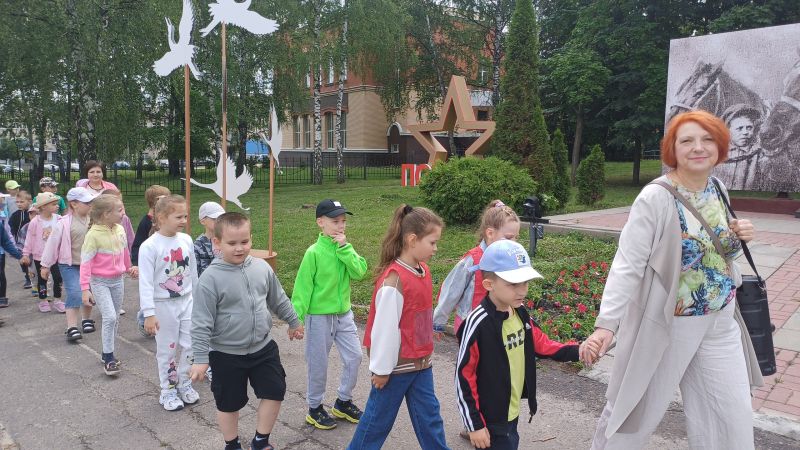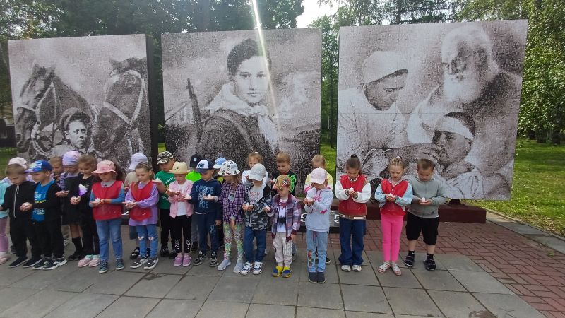 На кануне трагической даты 22 июня дети старшего дошкольного возраста совершили пешеходную экскурсию к мемориальному триптиху «СТЕНА ПАМЯТИ». Ребята послушали рассказ о том, для чего был возведён памятник, какие традиции связаны с ним, почему все люди до сих пор помнят и чтят память погибших воинов. Дошкольники почтили не вернувшихся с войны солдат минутой молчания.