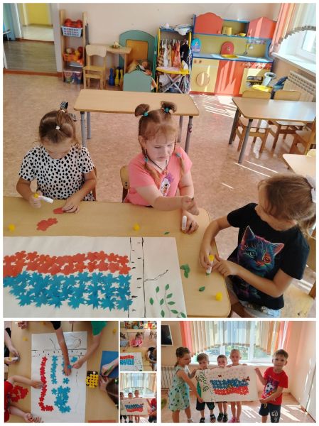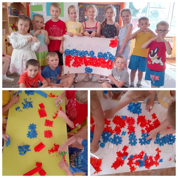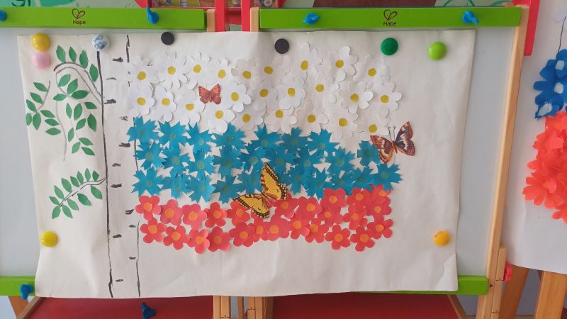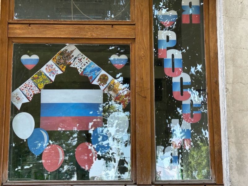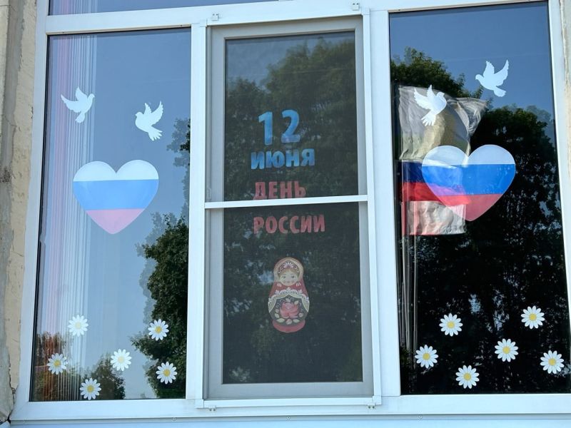 В преддверии праздника мы приняли активное участие в акции «Флаги России». На окнах появлялись яркие трёхцветные гирлянды, а также рисунки, символизирующие Родину — герб, сердца и цветы.
