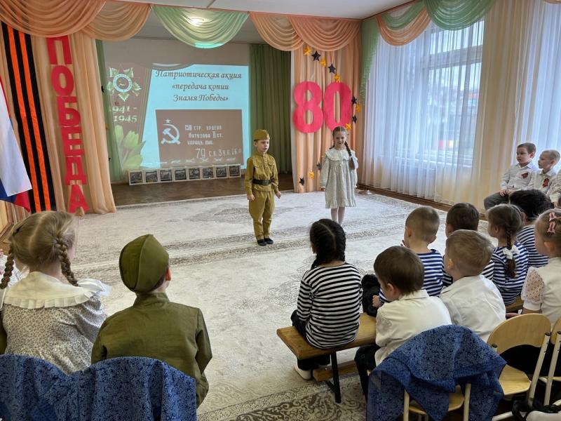 Сегодня, в преддверии 80-й годовщины Победы советского народа в Великой Отечественной войне, в Яблоньке состоялось важное и значимое событие — торжественная церемония, посвящённая передаче копии Знамени Победы.