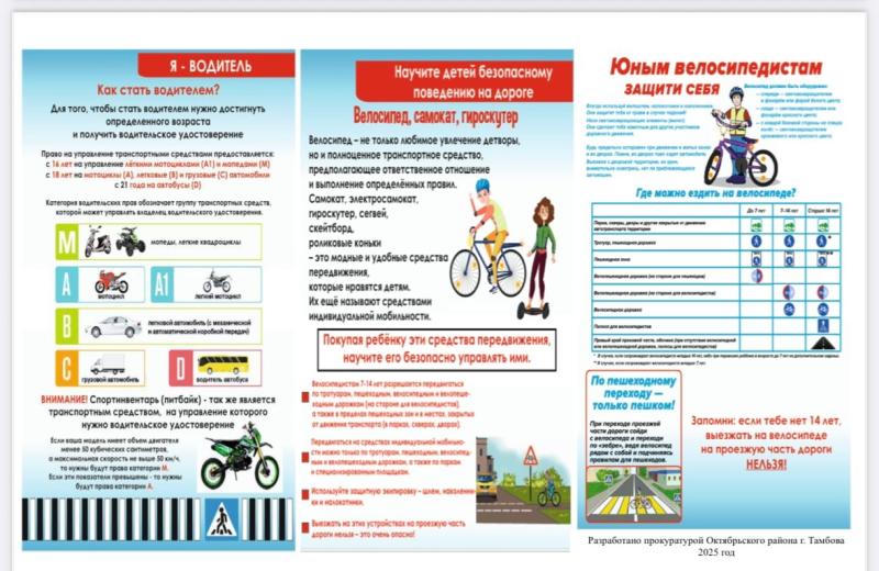 Предлагаем памятку о главных правилах дорожного движения, разработанную прокуратурой Октябрьского района города Тамбова.